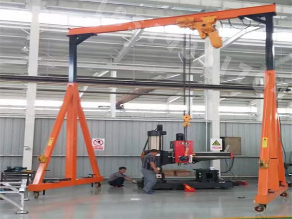 在一些廠房高度較高,而廠房門口較矮的場所,我們直接選擇高度較高的龍門吊是不容易將它推進去的,這種情況下如果大家選擇可升降龍門吊就方便多了。